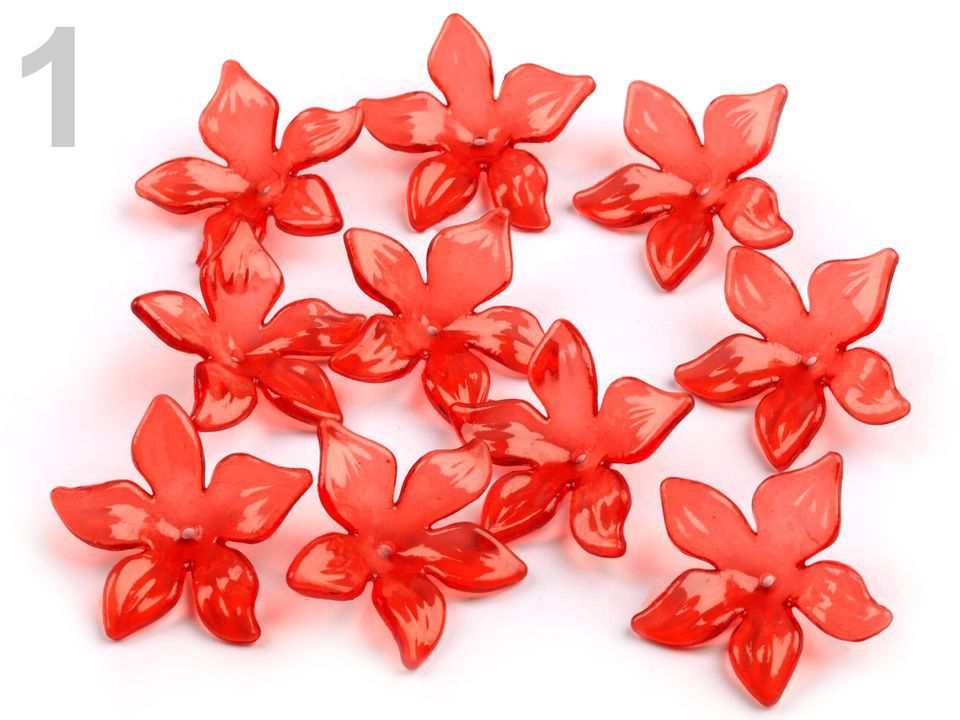 Půvabný plastový květ v transparentních barvách nadchne především korálkářky, které rády tvoří květinové šperky.