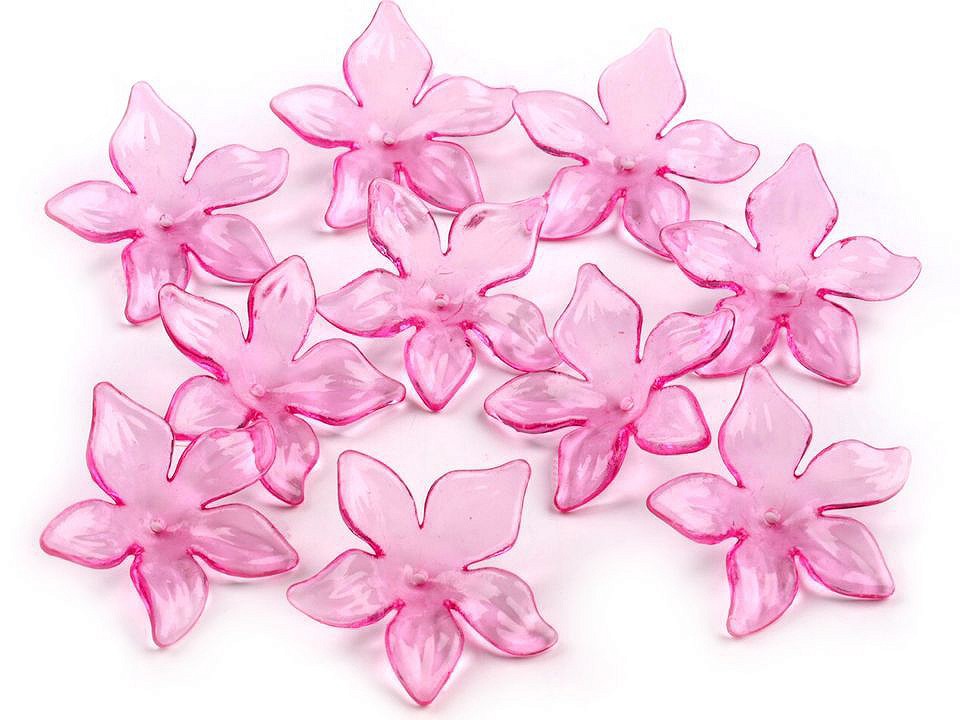 Půvabný plastový květ v transparentních barvách nadchne především korálkářky, které rády tvoří květinové šperky.