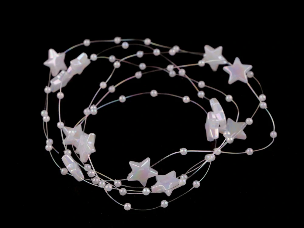 Dekorační perličky s hvězdičkami využijete jako ozdobný řetěz na věnce, kytice, slavnostní tabule, atd.