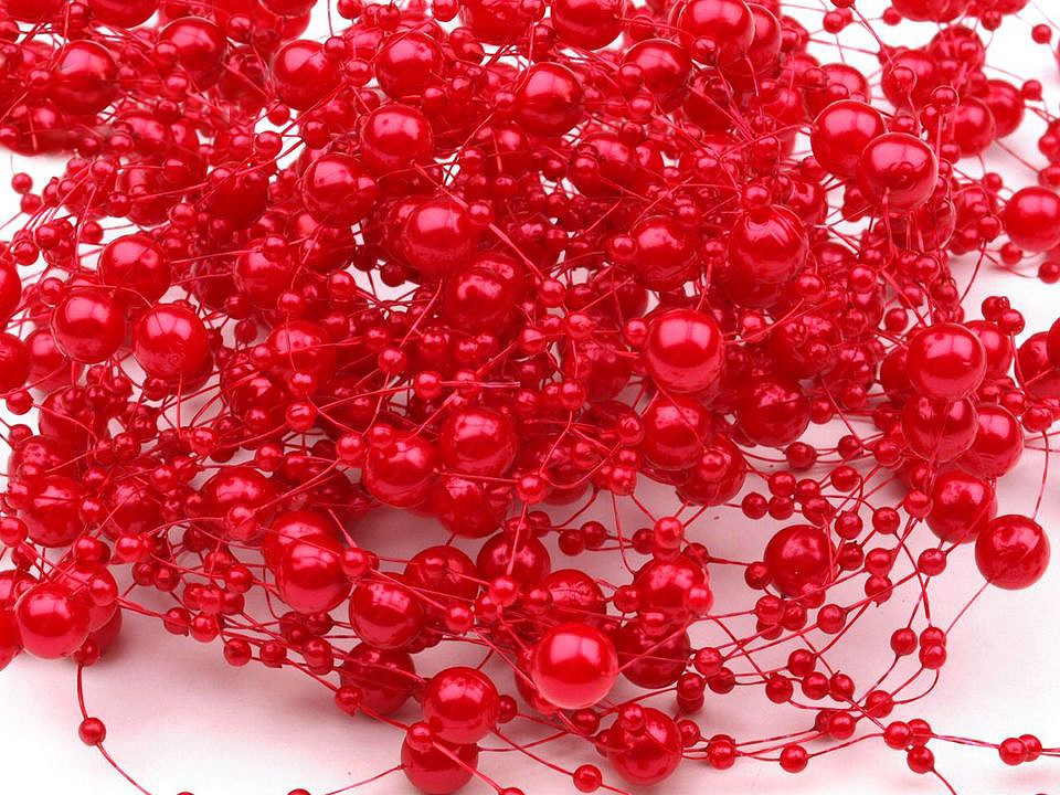 Perly na silonu Ø7mm d130cm červená 1ks12 Kč/ ks10 Kč bez DPH