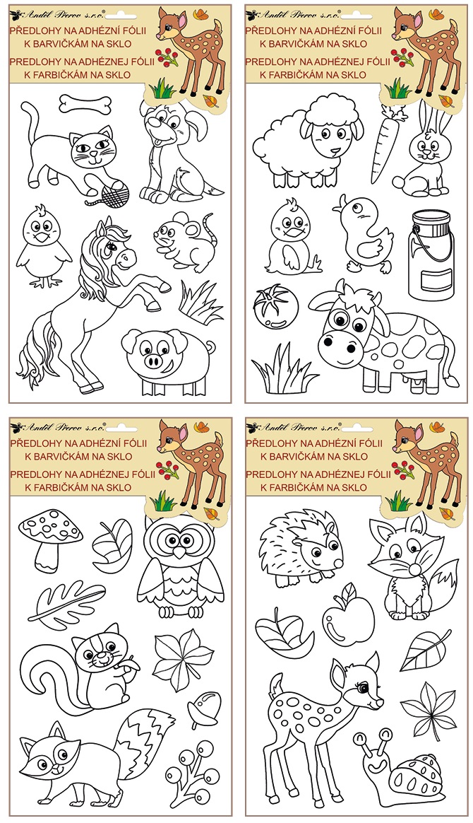 - Předlohy na malování na sklo zvířátka 12,5x35cm mix 1ks