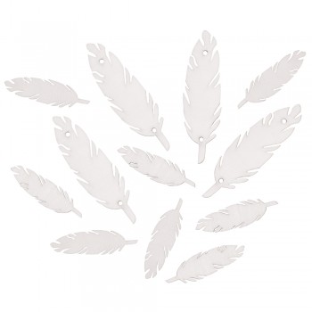 Přízdoba dřevěná peří bílé 7+4cm 12ks