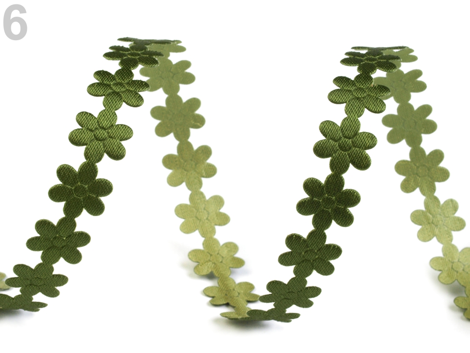 Prýmek saténový květ o12mm zelená 1m13 Kč/ m11 Kč bez DPH