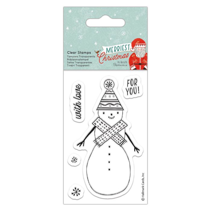 Rozměry razítek cca od 1x1cm do 9,9x5,5cm (v x š). Motivy razítek - sněhová vločka, nápisy, sněhulák.