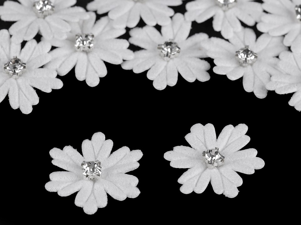 Aplikace květ s kamínkem Ø30mm bílá 1ks6 Kč/ ks5 Kč bez DPH