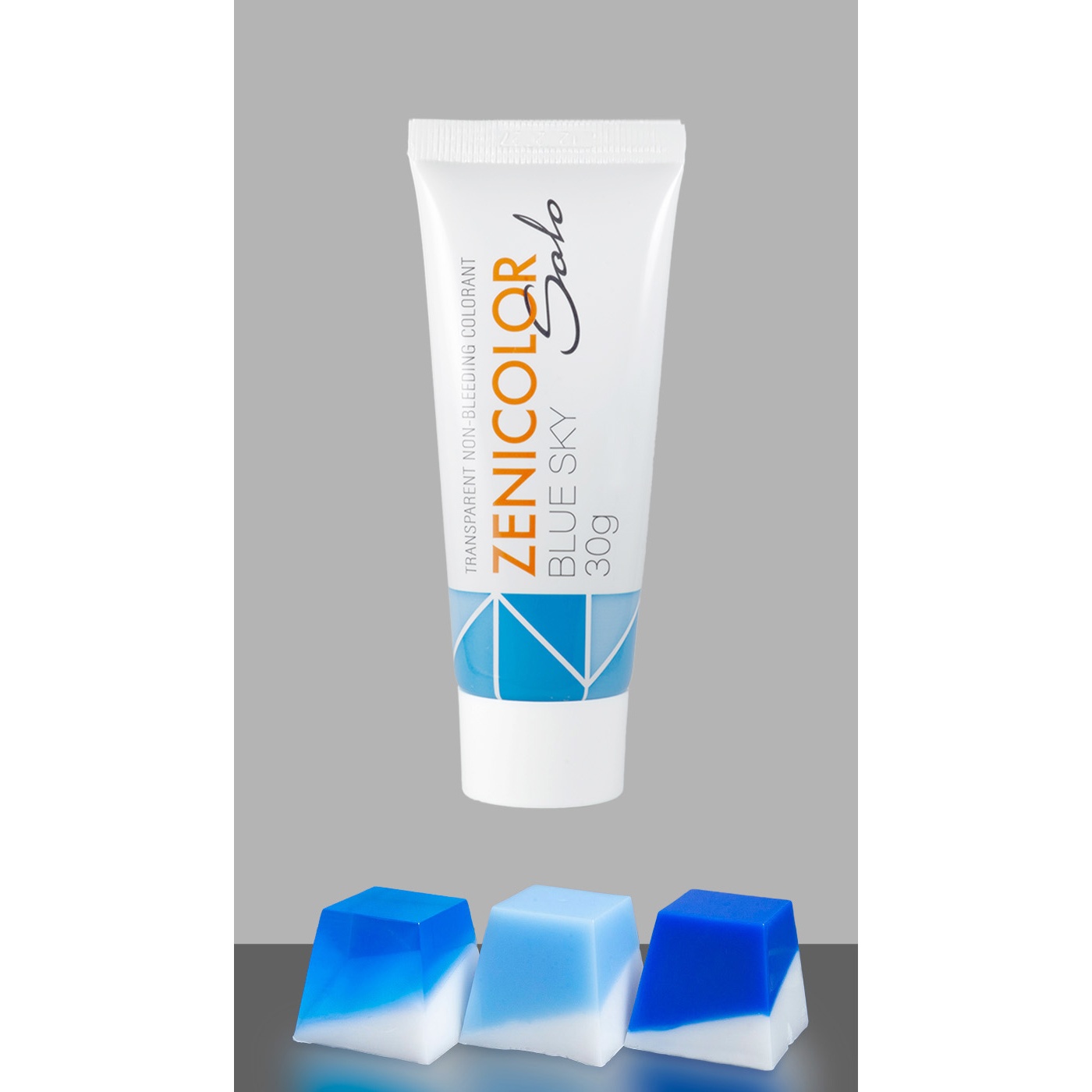 Zenicolor Solo je řada inovativních transparentních barviv připravených k použití na barvení mýdla. Barva do mýdla má pastovou konzistenci a snadno se rozpustí v roztaveném mýdlovém základu. Kromě transparentních barev lze dosáhnout i pastelových a neprůhledných sytých barev smícháním bílé a transparentní mýdlové hmoty jako základ pro barvení. Neobsahuje žádné složky pocházející ze zvířat. Netestováno na zvířatech.