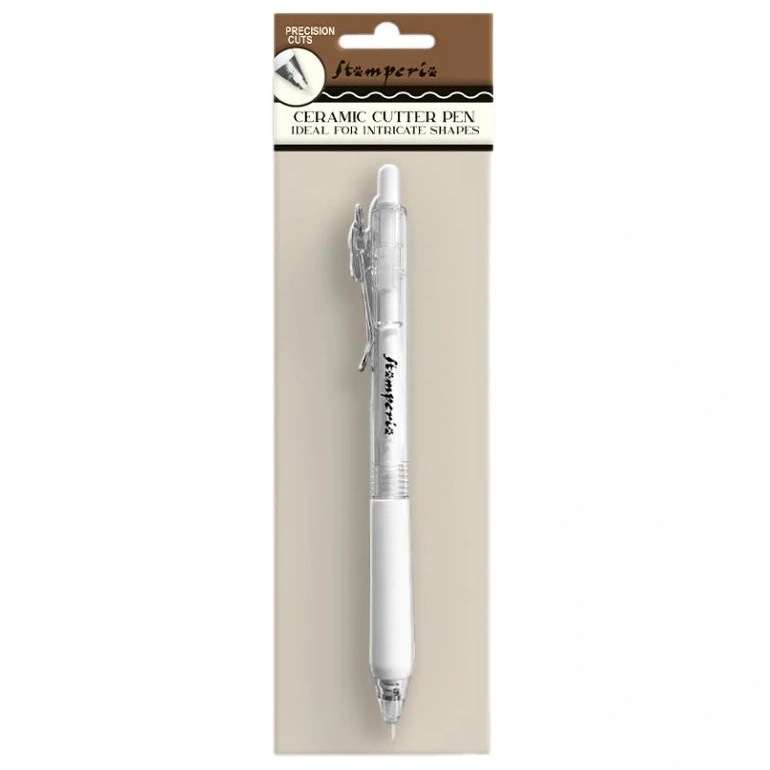 Keramické řezací pero je vhodné na vyřezávání složitých tvarů. Lze použít na vyřezávání washi pásek (vzorů na washi papíru), scrapbookových papírů apod. Keramický hrot zůstává ostrý a nezrezaví. Funguje jako propiska, hrot je zatahovací, čepel je skrytá, aby nedošlo k pořezání. Díky tvaru pera ho můžete pohodlně uložit do penálu nebo pomocí klipu zavěsit.