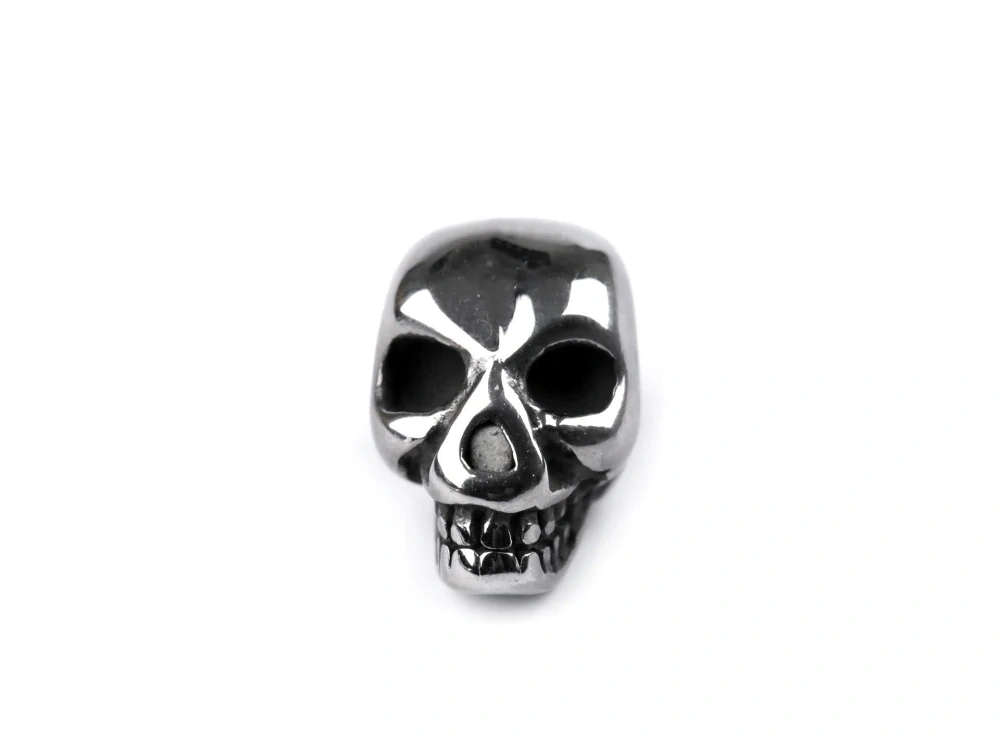 Kovový korálek ve tvaru lebky je vyrobený z kvalitní nerezové oceli. Má vysoký zrcadlový lesk. Využijete jej do náramku, kterému dodá na dramatičnosti. Hodí se i do náhrdelníků či náušnic, dá se použít samostatně nebo jako ozdobný oddělující díl mezi další korálky.