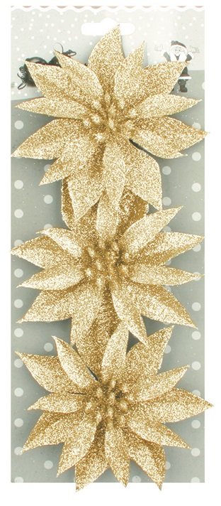 Květ na klipu zlatá o8cm 3ks49 Kč/ ks40 Kč bez DPH