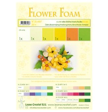 Sada pěnovek foamiran, 6 barev, formát A4 (21x29,7cm). Tloušťka 0,8mm. Barvy: špinavě bílá, světle žlutá, žlutá, tmavě žlutá, oranžová, žluto-zelená. Foamiran se využívá na výrobu dekorací, květin, listů, interiérových dekorací ve floristice, scrapbookingu apod. Foamiran je netoxický, má jemně porézní strukturu, minimálně absorbuje vodu. Dá se barvit téměř všemi typy barev, nejčastěji se používají pastely, olejové pastely, akrylové barvy, pastelky apod. Tento materiál je velmi plastický. Po mírném zahrátí (žehličkou na 1.-2. stupeň nebo podle typu žehličky) se velmi snadno tvaruje. Pěnová guma se lehce stříhá nůžkami, lze použít raznici nebo Big Shot. Hotové výrobky odolávají povětrnostním vlivům. Malé dírky nebo póry jsou dané specifickou výrobou pěnovky, nejdená se o vadu materiálu. Tloušťka pěnovky může být v rámci jednoho listu nestejnorodá, při výrobě kytiček se materiál zahřívá a formuje, takže se jeho tloušťka dále mění a přizpůsobuje potřebám projektu. Balení obsahuje fotonávod na výrobu kytiček. Nevhodné pro děti do 3 let.