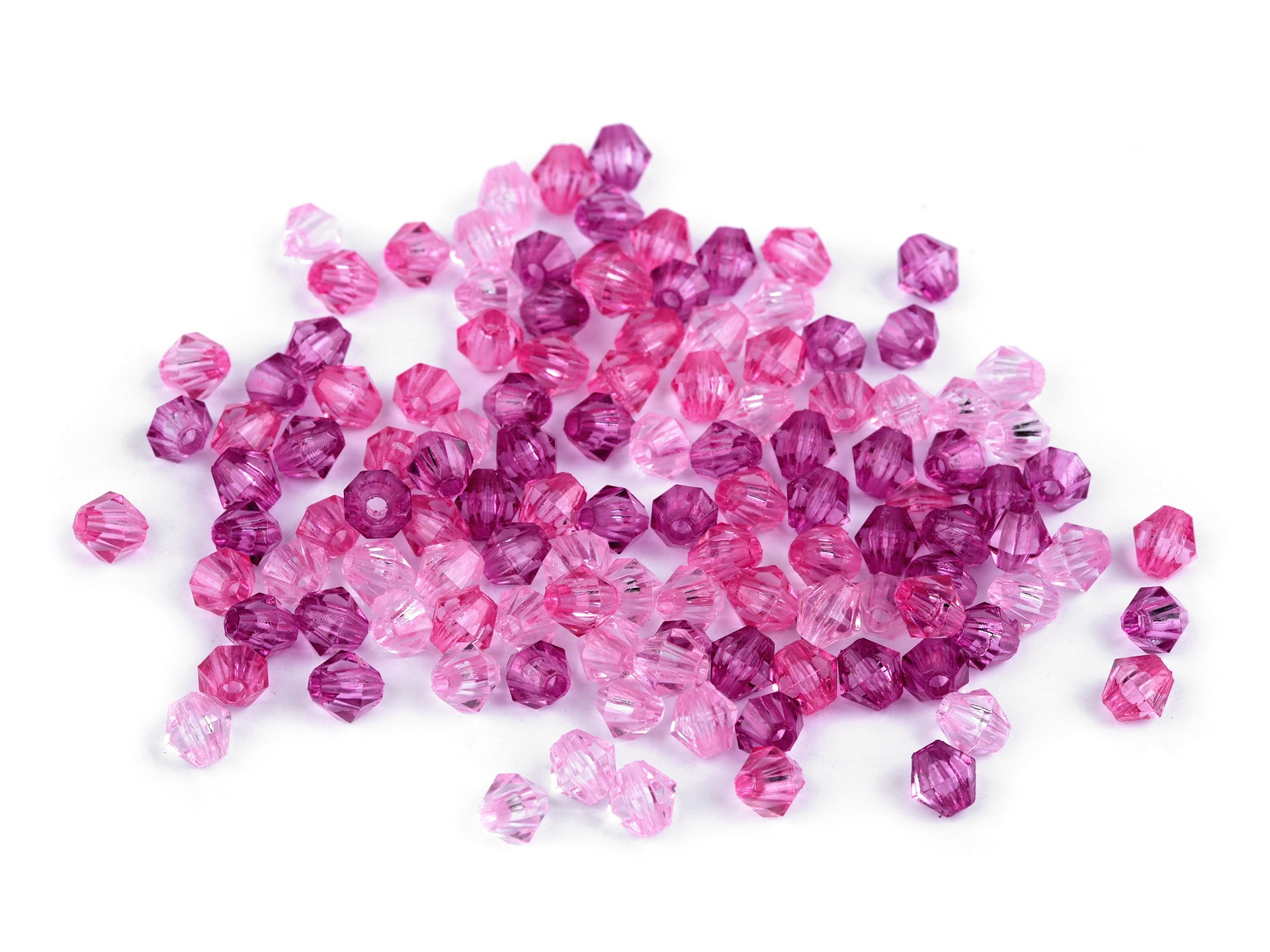 Barevně sladěný mix transparentních korálků z pevného plastu, broušených do tvaru sluníčka, můžete použít k různým korálkovým technikám.