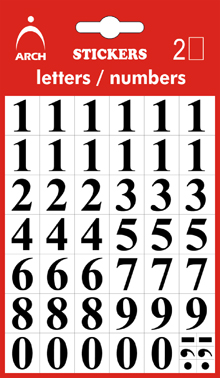 Samolepky čísla 0-9 v14mm 2archy černá40 Kč/ ks33 Kč bez DPH