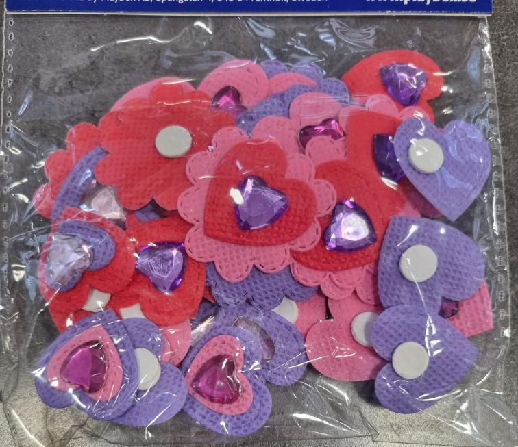 Srdíčka kytičky výřezy s kamínky 2,5-3,5cm 36ks ( růžová , červená, fialová)