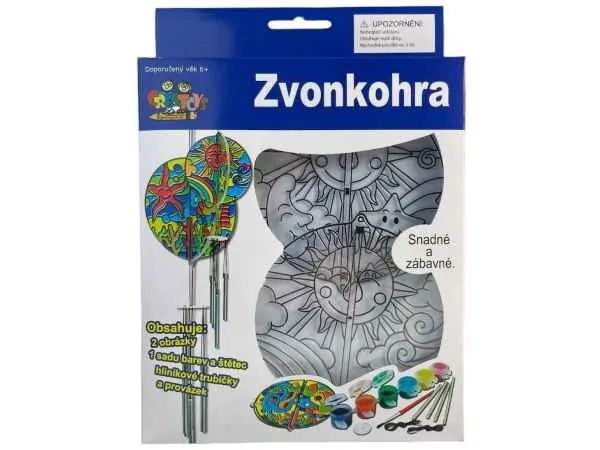 Postup: Vybarvěte obrázky a nechte zaschnout. Po zaschnutí spojte obrázky proti sobě, tak jak je vyznačeno na obrázku č. 2. Navažte hliníkové trubičky a připevněte k obrázkům. Po té zvonkohru zavěste.
